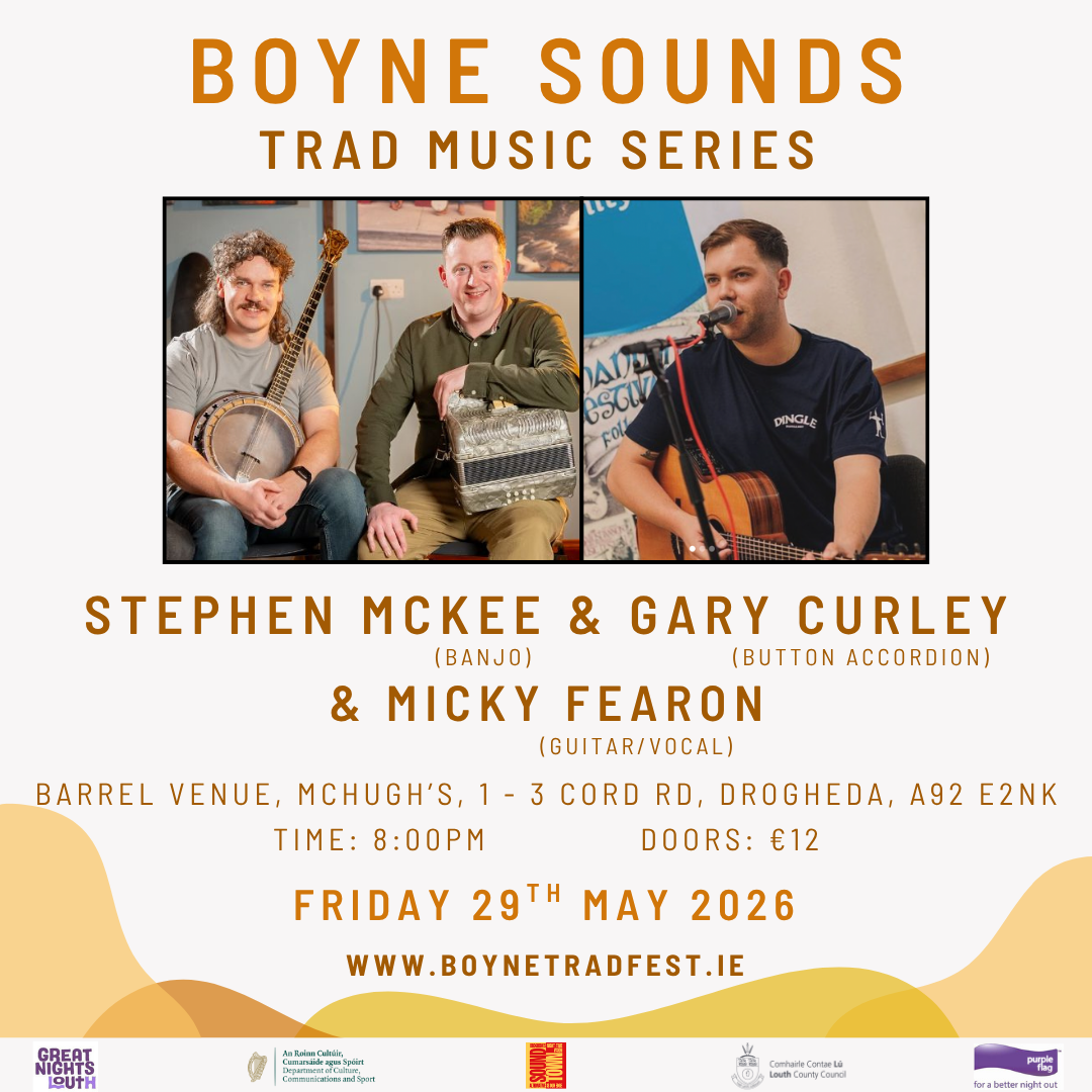 Taking the internet by storm with their recent album ‘Chunky Business’, Fermanagh & Derry based musicians Stephen McKee & Gary Curley come to Drogheda for chunky tunes into the evening.